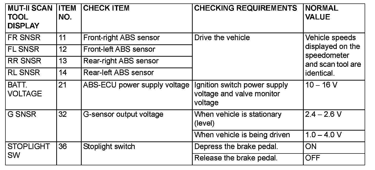 The following items can be read by the scan tool from the ABS-ECU input data.