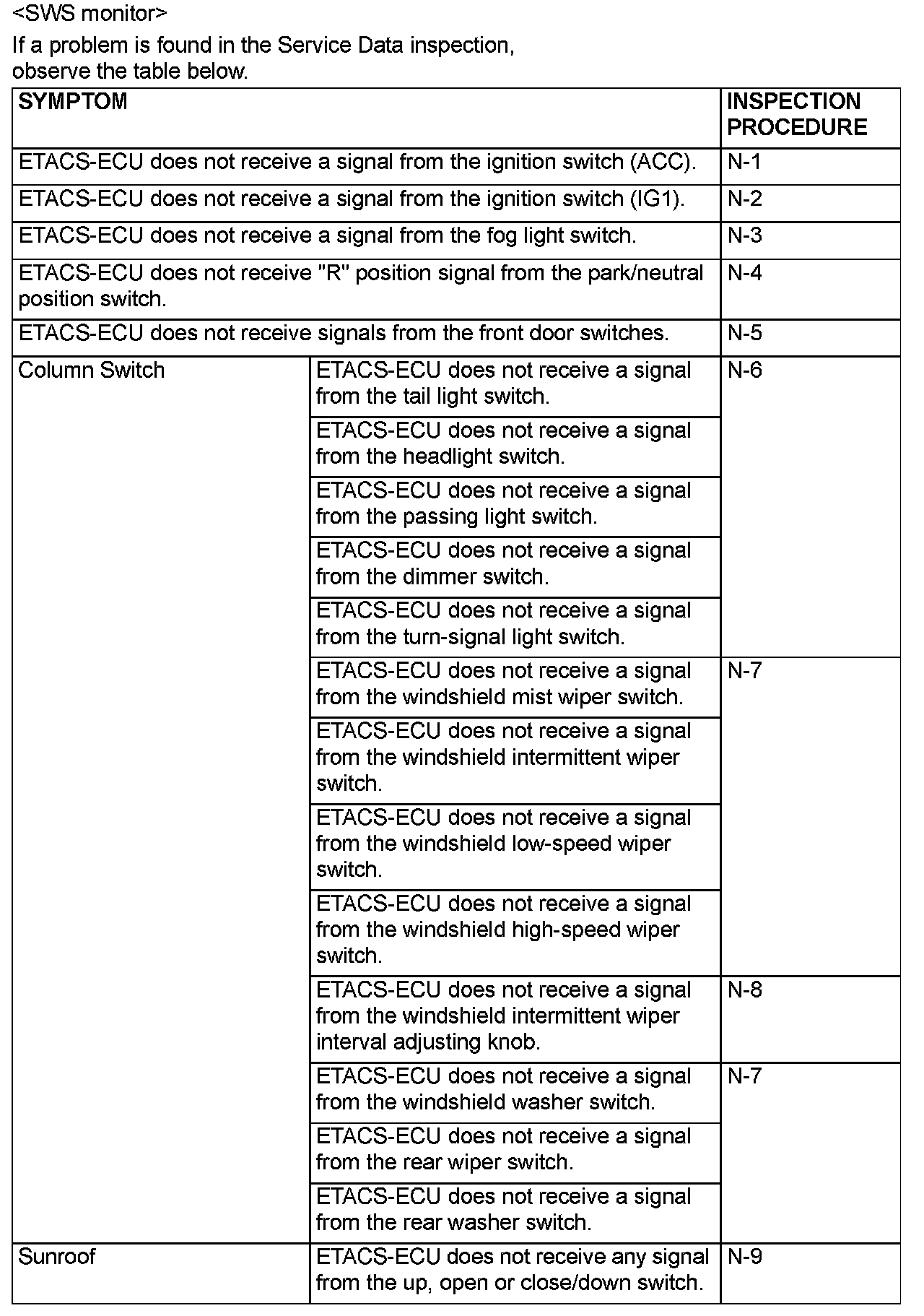 2. The input signals can be checked by using the scan tool and the SWS monitor kit.