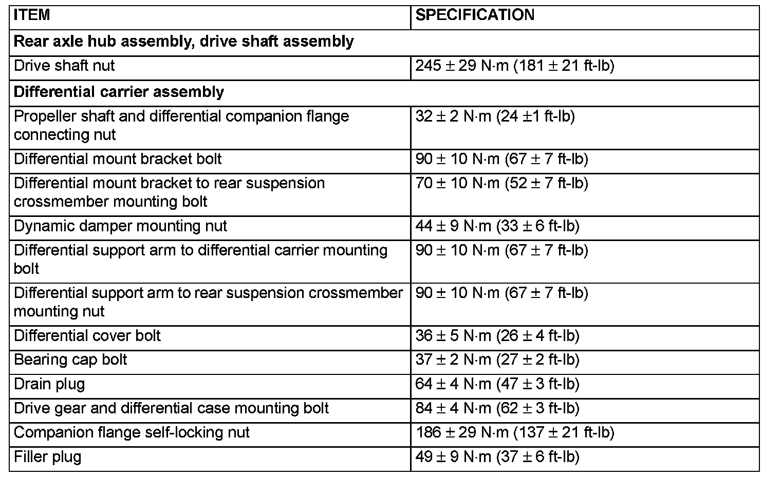 FASTENER TIGHTENING SPECIFICATIONS