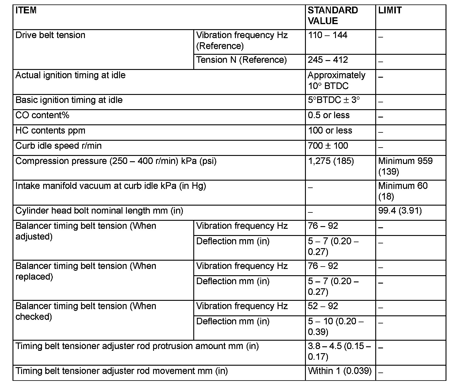 SERVICE SPECIFICATIONS