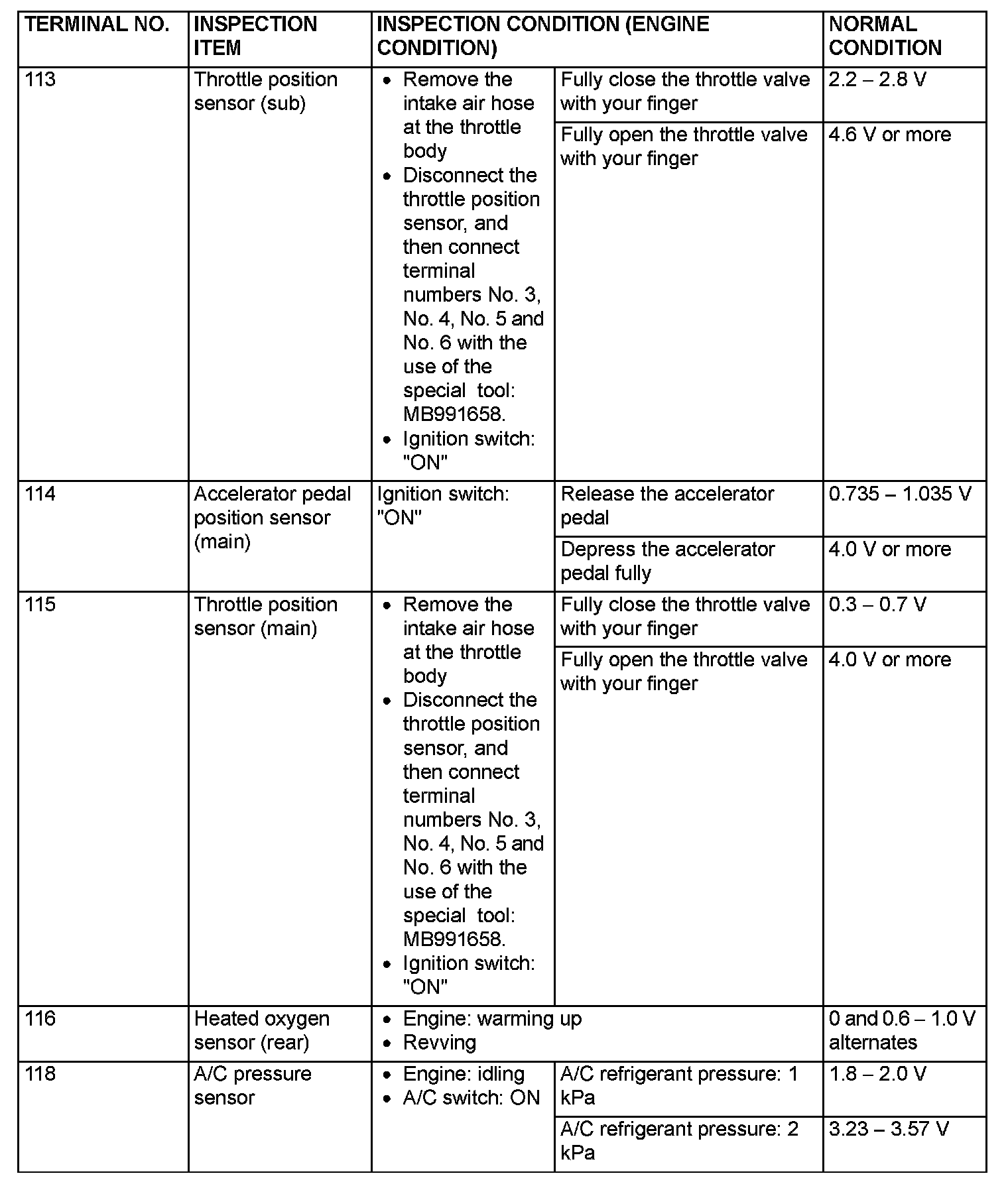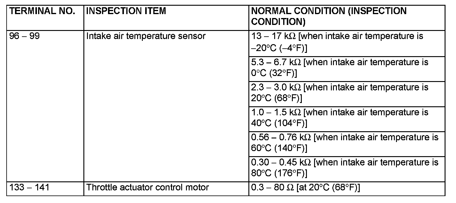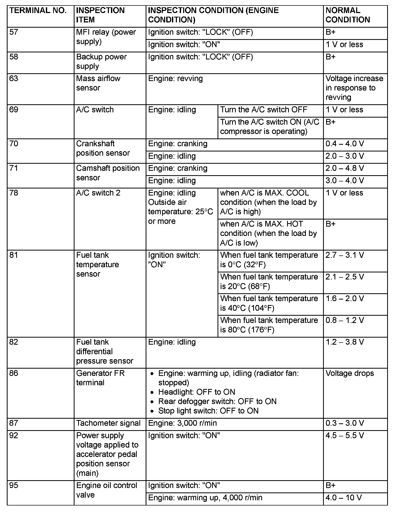 TERMINAL VOLTAGE CHECK CHARTPCM Connector Terminal Arrangement Part 1: