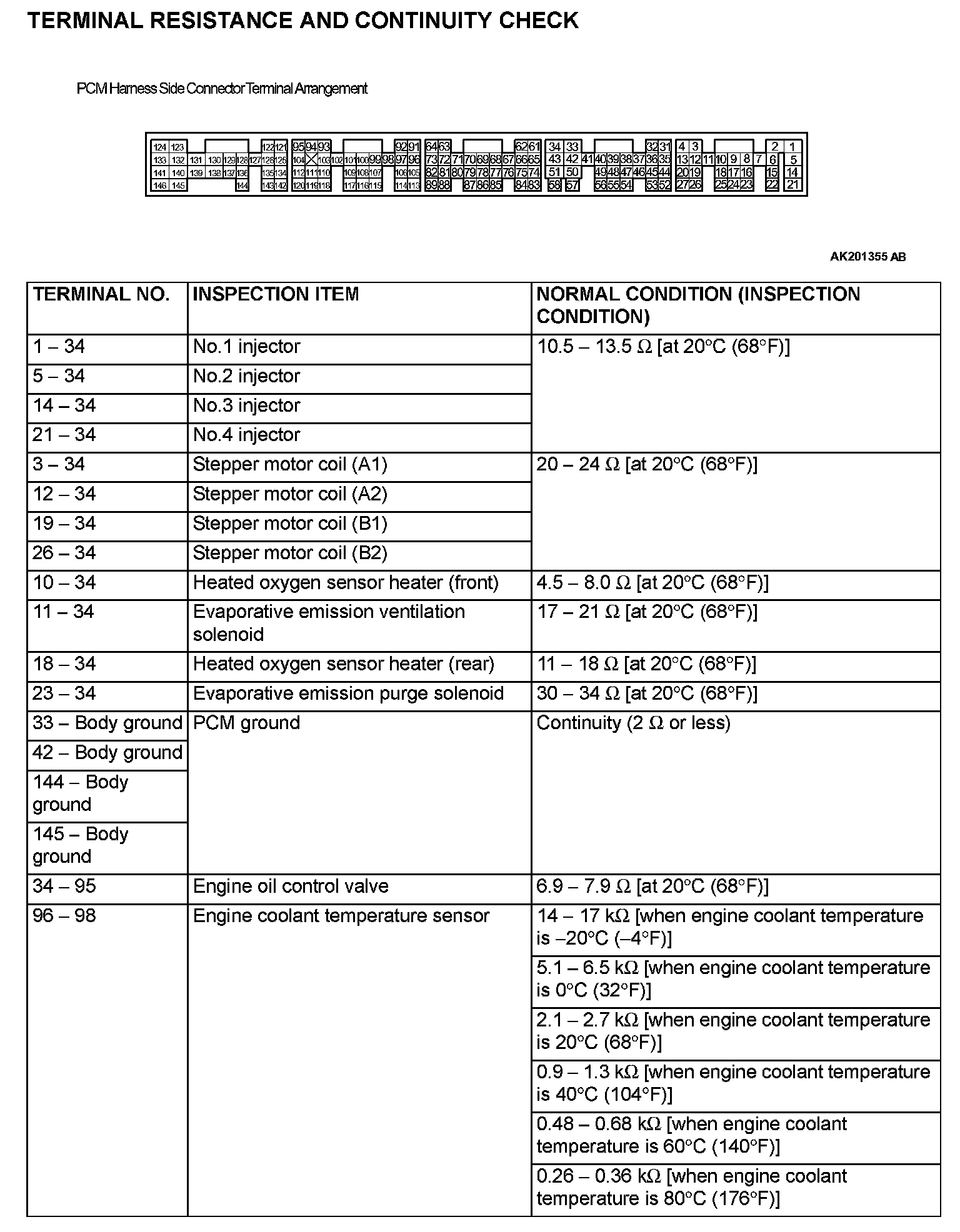 PCM Connector Terminal Arrangement Part 3: