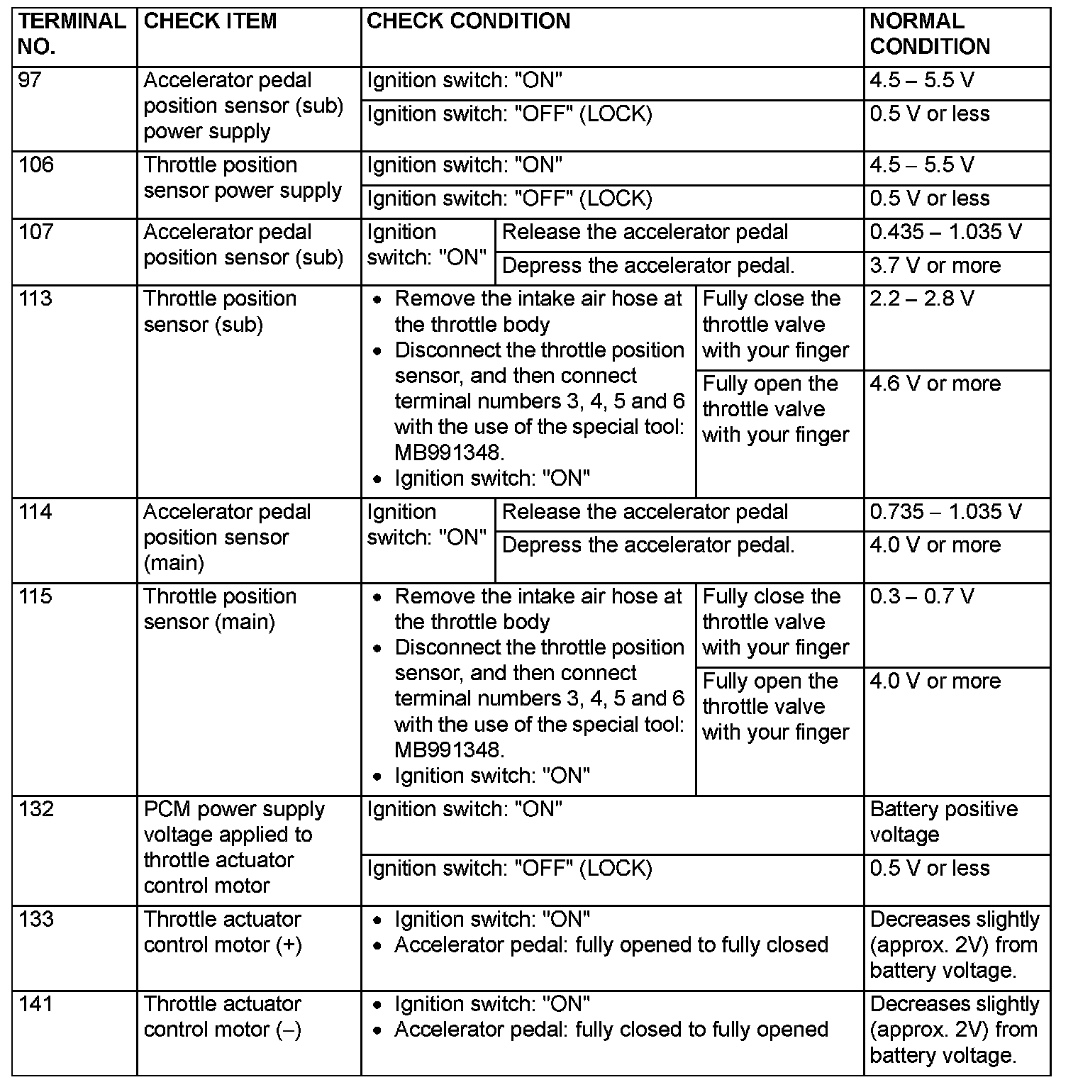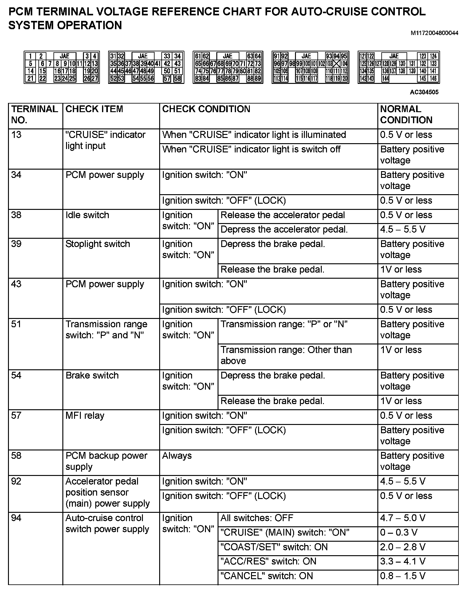 PCM Terminal Voltage Reference Chart For Auto-Cruise Control System Operation Part 1: