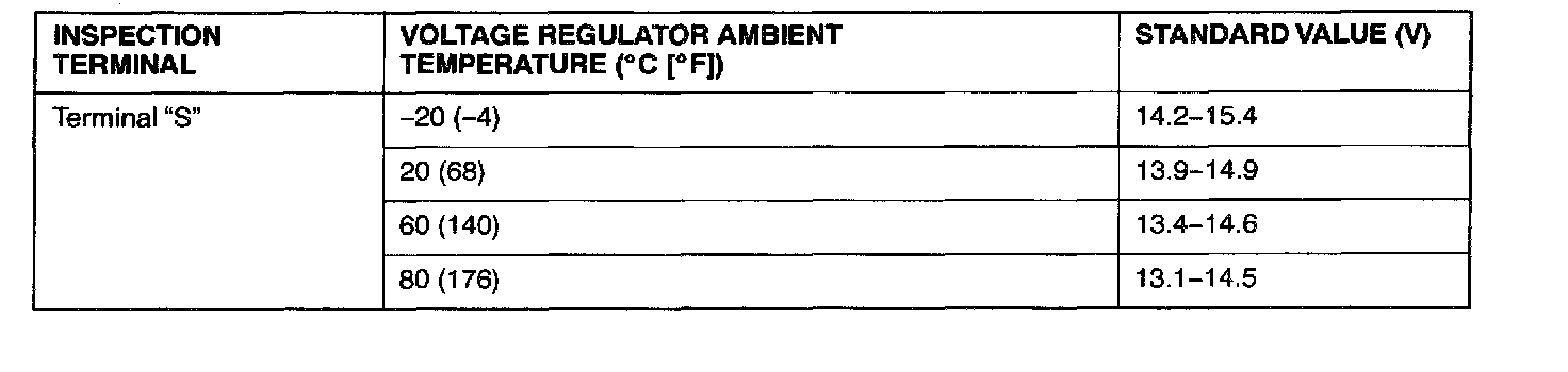 Voltage Regulation Table: