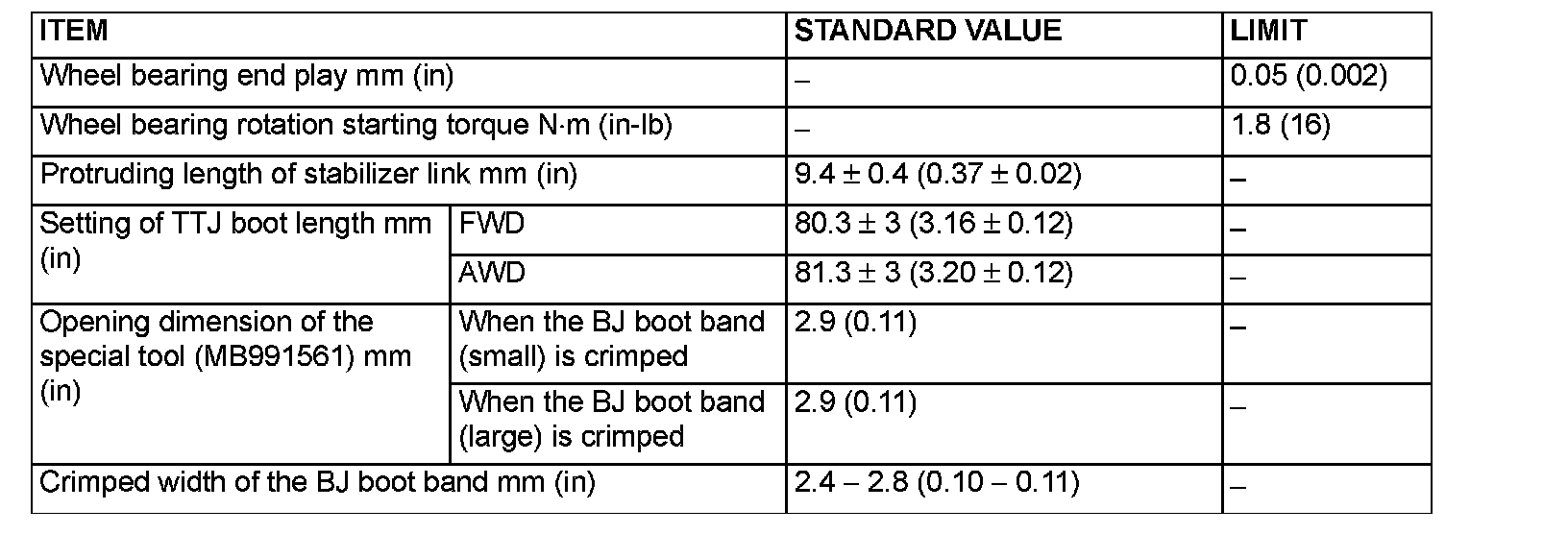 SERVICE SPECIFICATIONS