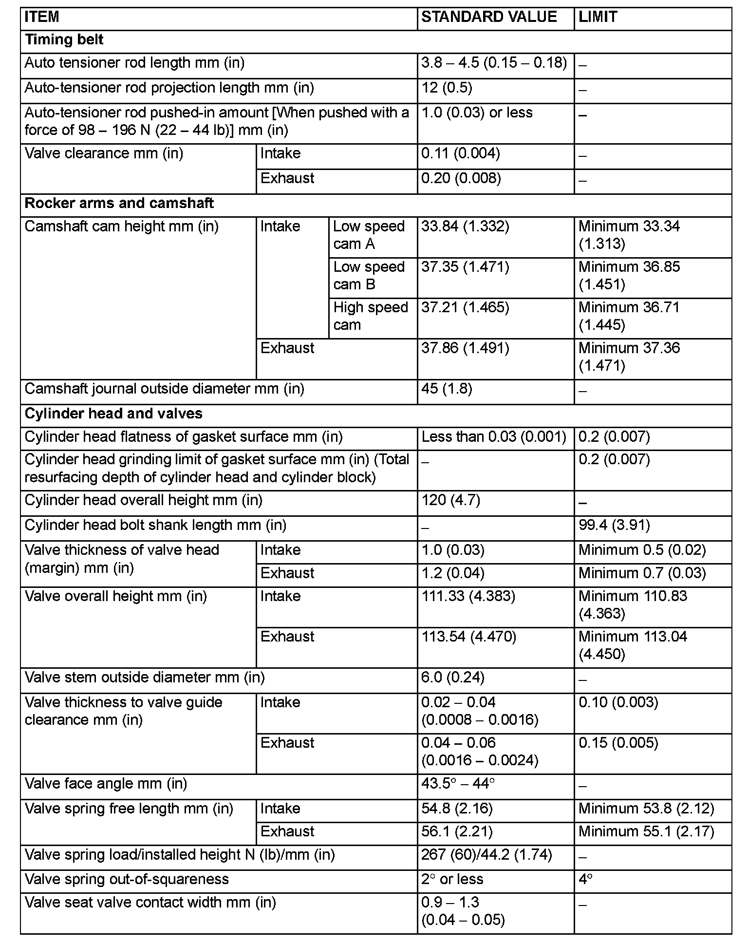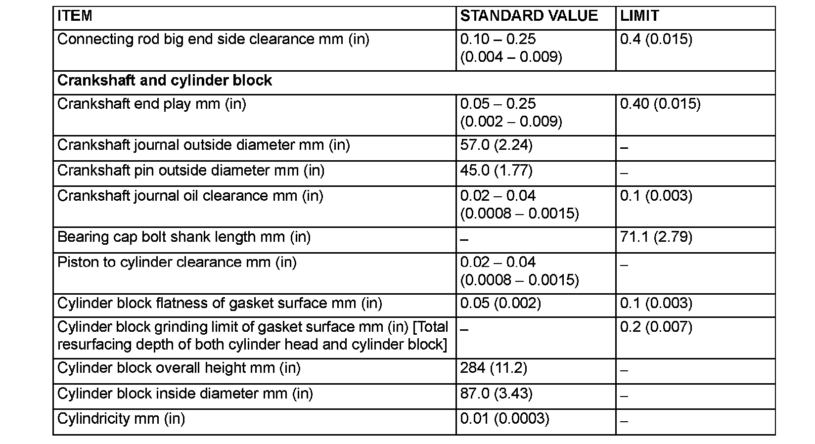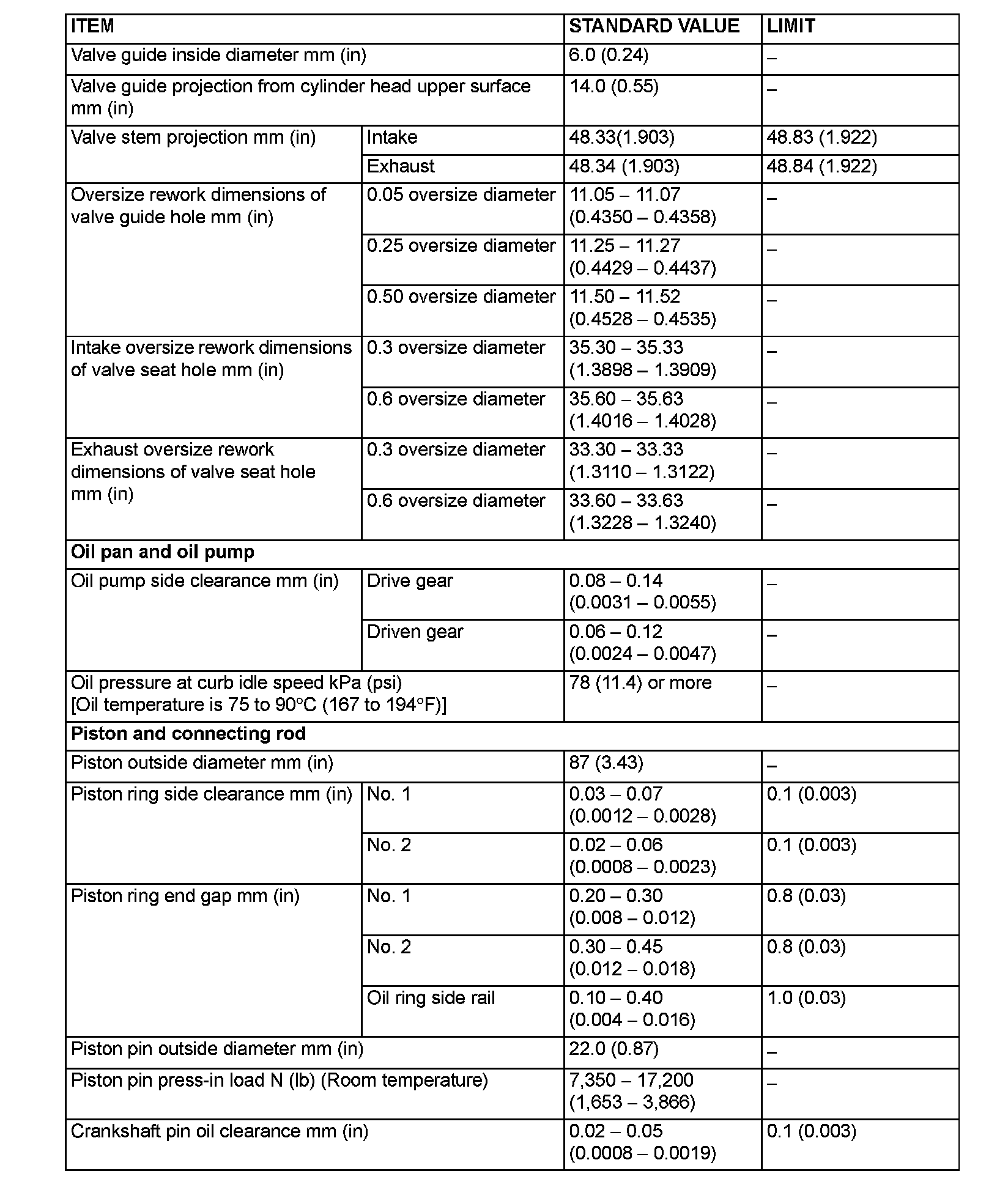 Engine-Overhaul Specifications