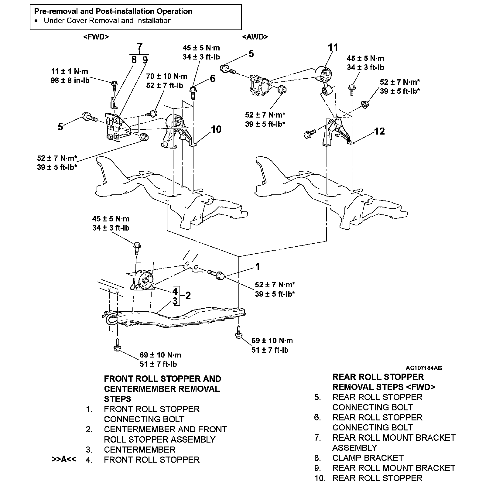 ENGINE ROLL STOPPER AND CENTERMEMBER REPLACEMENT W/ RELATED COMPONENTS