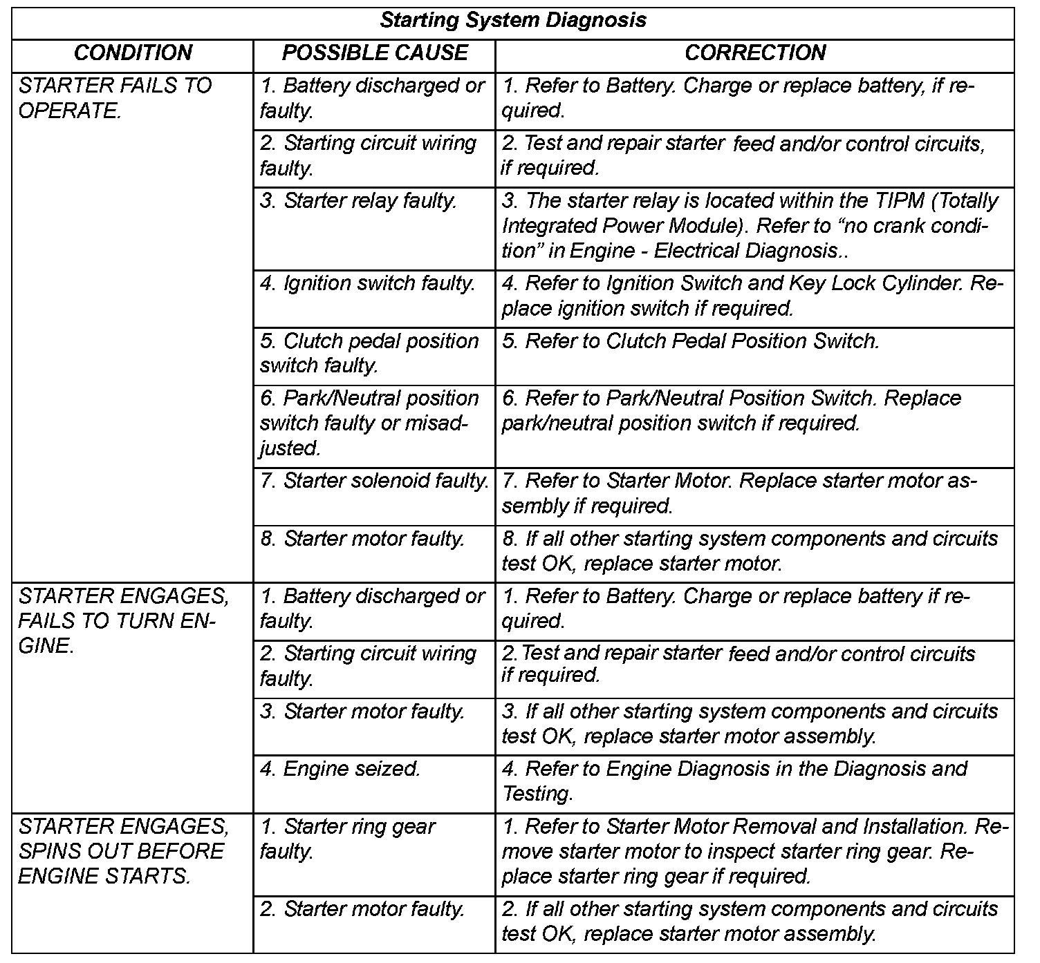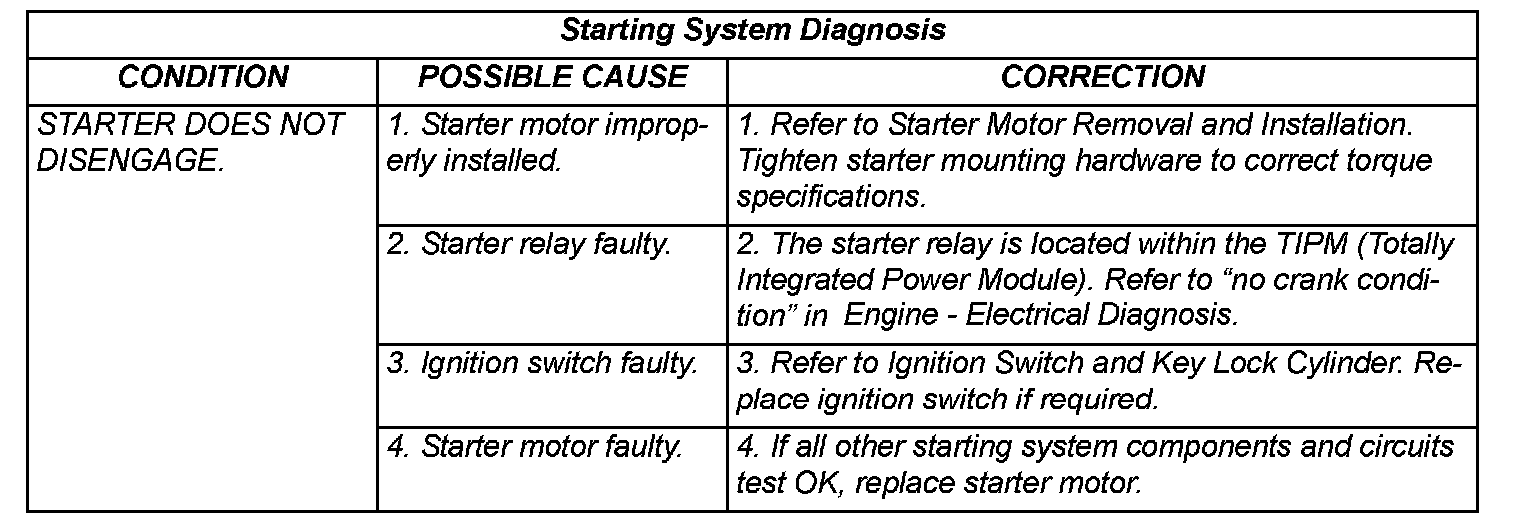 - Starter Relay - The starter relay is located within the TIPM (Totally Integrated Power Module). Refer to "no crank condition" in Engine - Electrical Diagnosis.