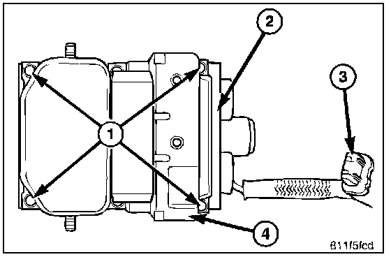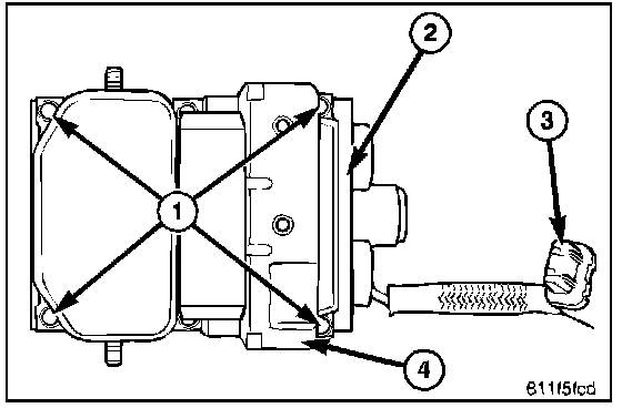 1. Disconnect the pump electrical connector (3) from the HCU (2).