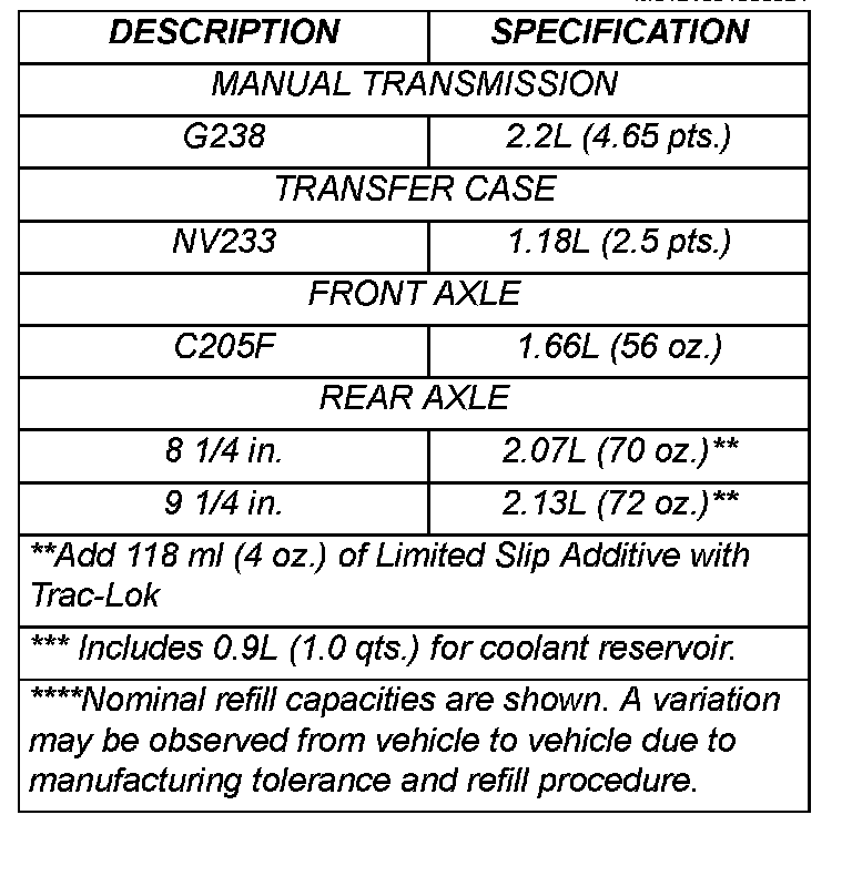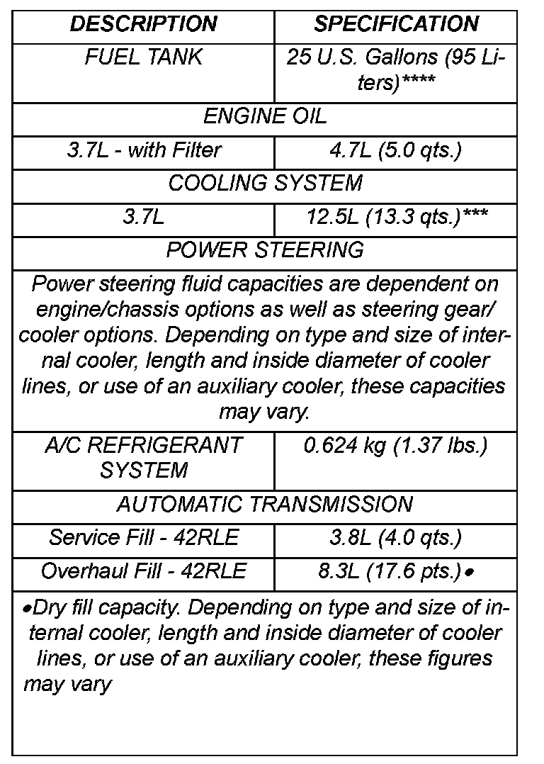 FLUID CAPACITIES