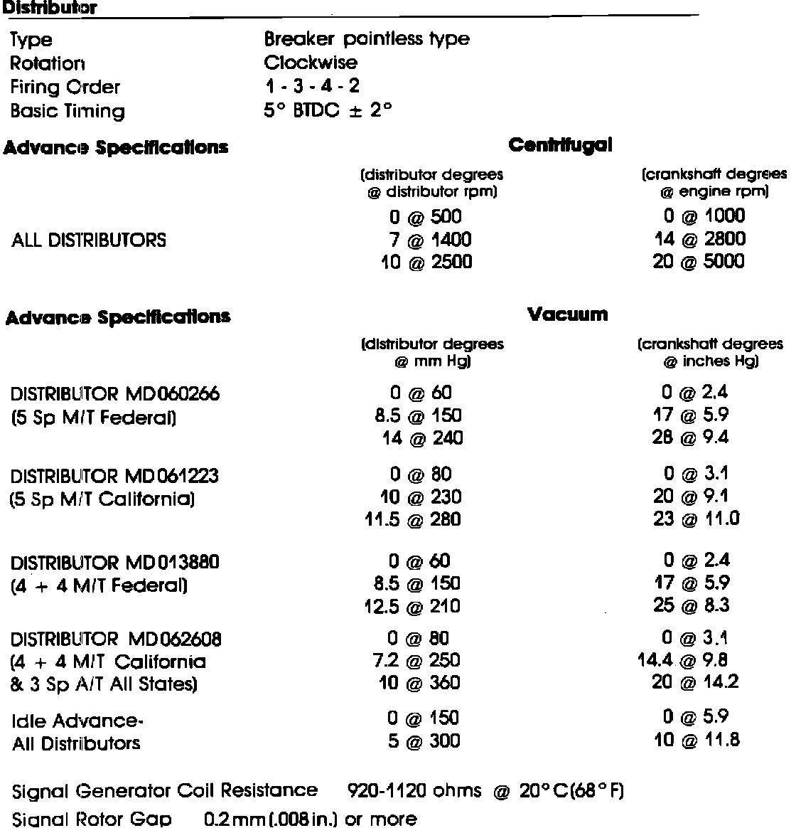 Distributor Specifications: