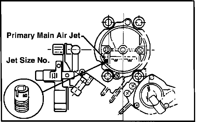 20. Remove the float bowl cover. Check the sized the main and pilot jets. Replace any that are not the same as the specifications in the table shown below.