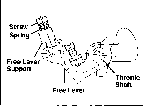 1. Remove and discard the screw, spring and Free Lever Support from the carburetor linkage.