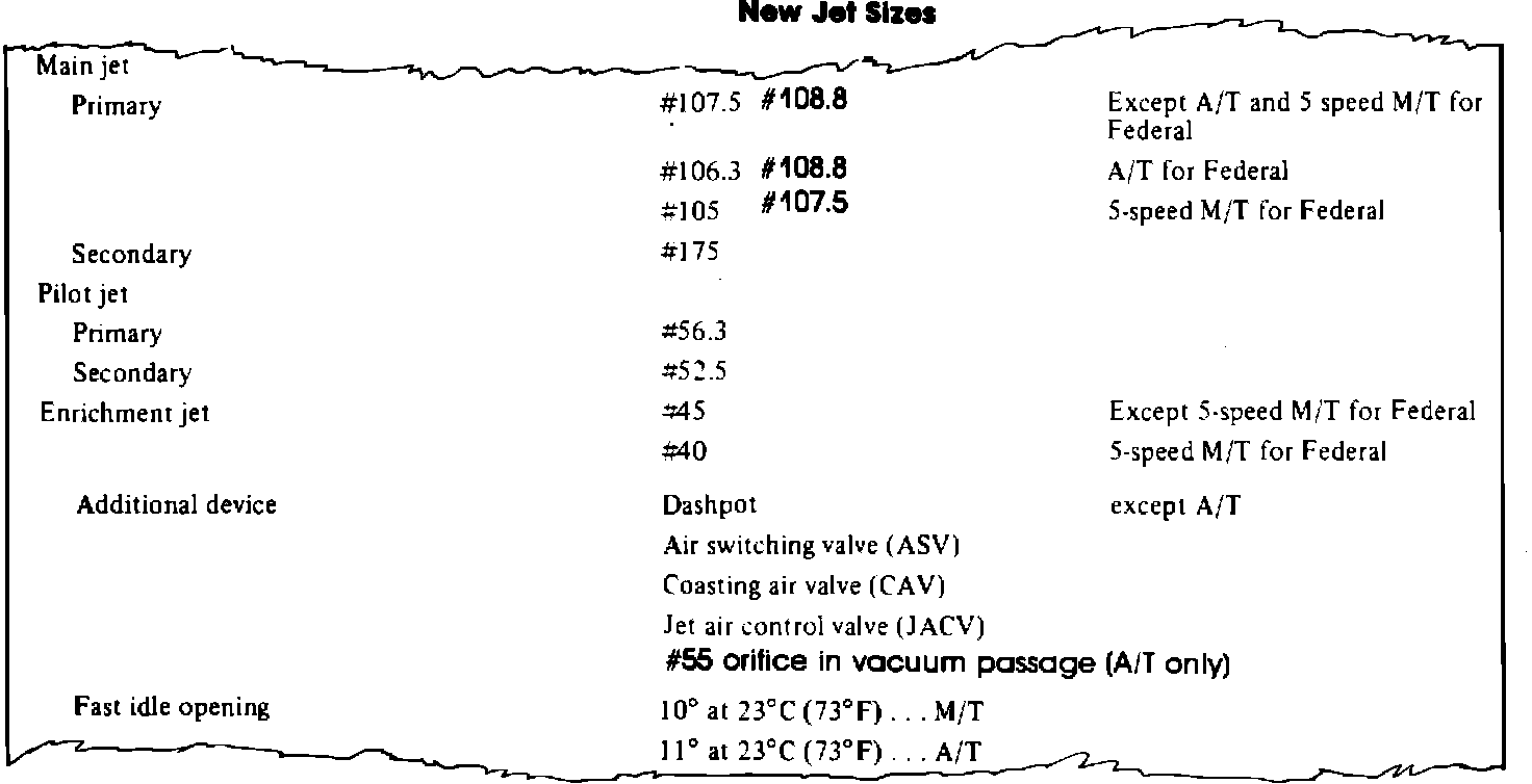 Carburetor - Specifications Update