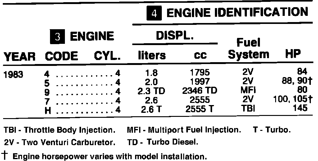 To identify an engine by the manufacturer's code, follow the four steps designated by the numbered blocks.