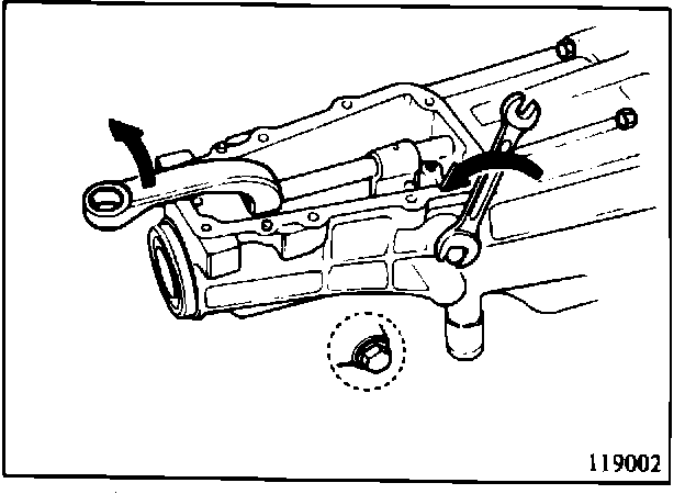 5. Remove OD-R and 3-4 shift rail toward the rear of the transmission case, and remove OD-R shift fork.