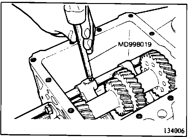 1. Using a pin punch, remove the 3-4 and 1-2 speed shift fork spring pins. (134006)