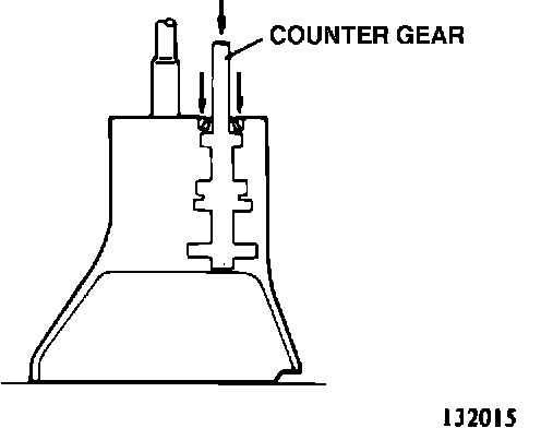 8. The counter gear end play should be adjusted with a spacer installed on the rear side of the outer race of center taper roller bearing. This spacer is held down by the rear bearing retainer and the reverse -idler gear shaft. Adjust counter gear end play as follows: