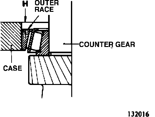 (3) Put a spacer of proper thickness (slightly thinner than dimension "H" shown in illustration) on the outer race. (132016)