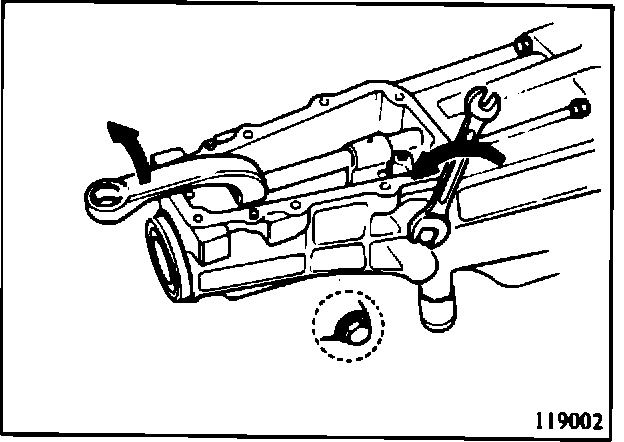 20. Apply sealant to the threaded portions of the extension housing mounting bolts, whose threaded holes penetrate into the case.