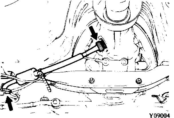 3. Disconnect the speedometer cable and the back-up light switch harness. (Y09004)