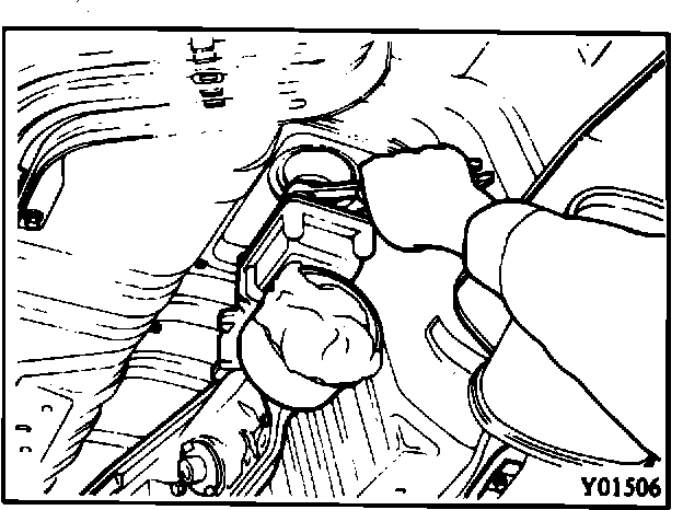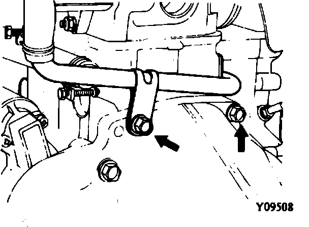 7. Remove the two upper transmission mounting bolts from the bell housing. (Y09508)