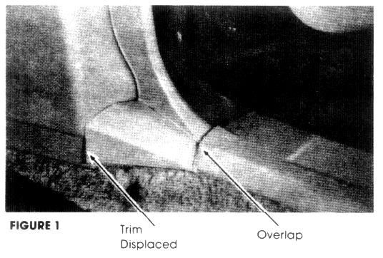 2. If the scuff plate overlaps or displaces the side cowl trim, use a cutting tool to trim the front edge of the scuff plate as necessary to assure a proper fit. (See Figure 3)