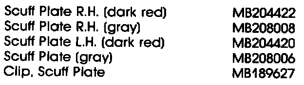 Some early production Starion models may have one or more door scuff plates which are twisted or deformed: or which overlap and/or displace the side cowl trim (see Figure 1). The models affected are within the following VIN ranges: