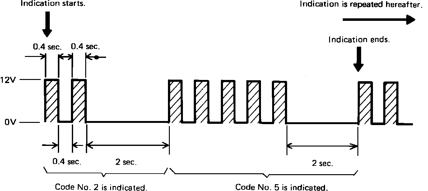 A normally operating ECI system will be indicated by a constant 12 vdc signal at the diagnostic connector. If a failure occurs it is indicated by the voltage at the diagnostic connector alternating between 0 and 12 vdc. The number of pulses from 0 to 12 vdc can be counted to determine what the error code is.