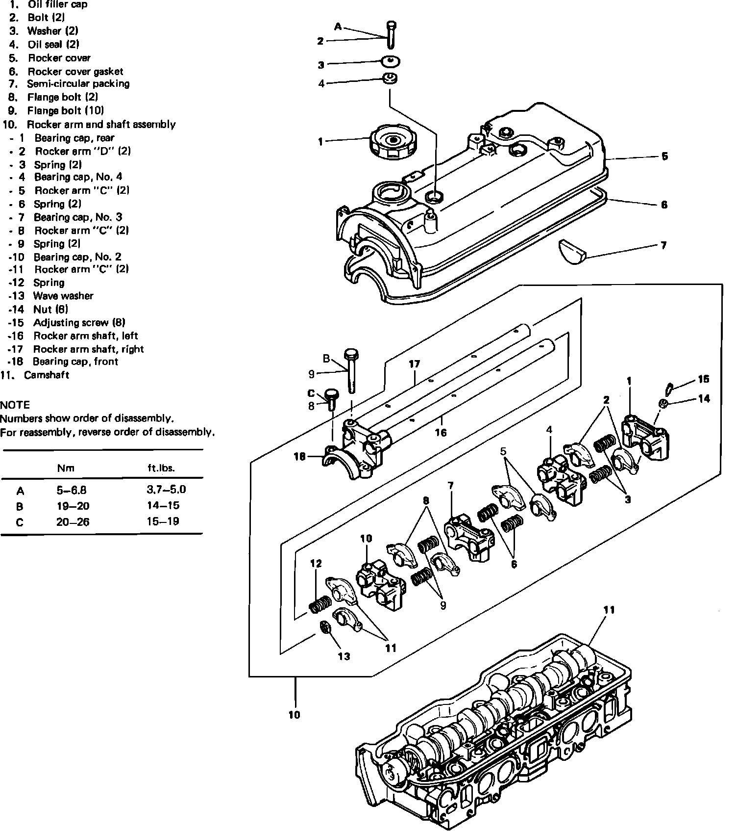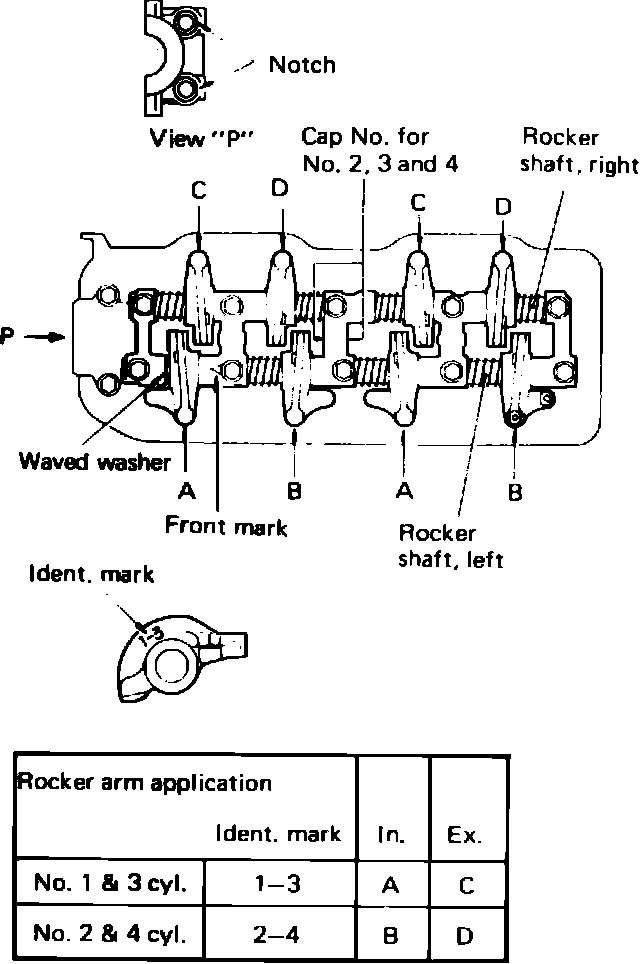 Fig. 3 Exploded view of camshaft, rocker arm & rocker shaft assemblies: