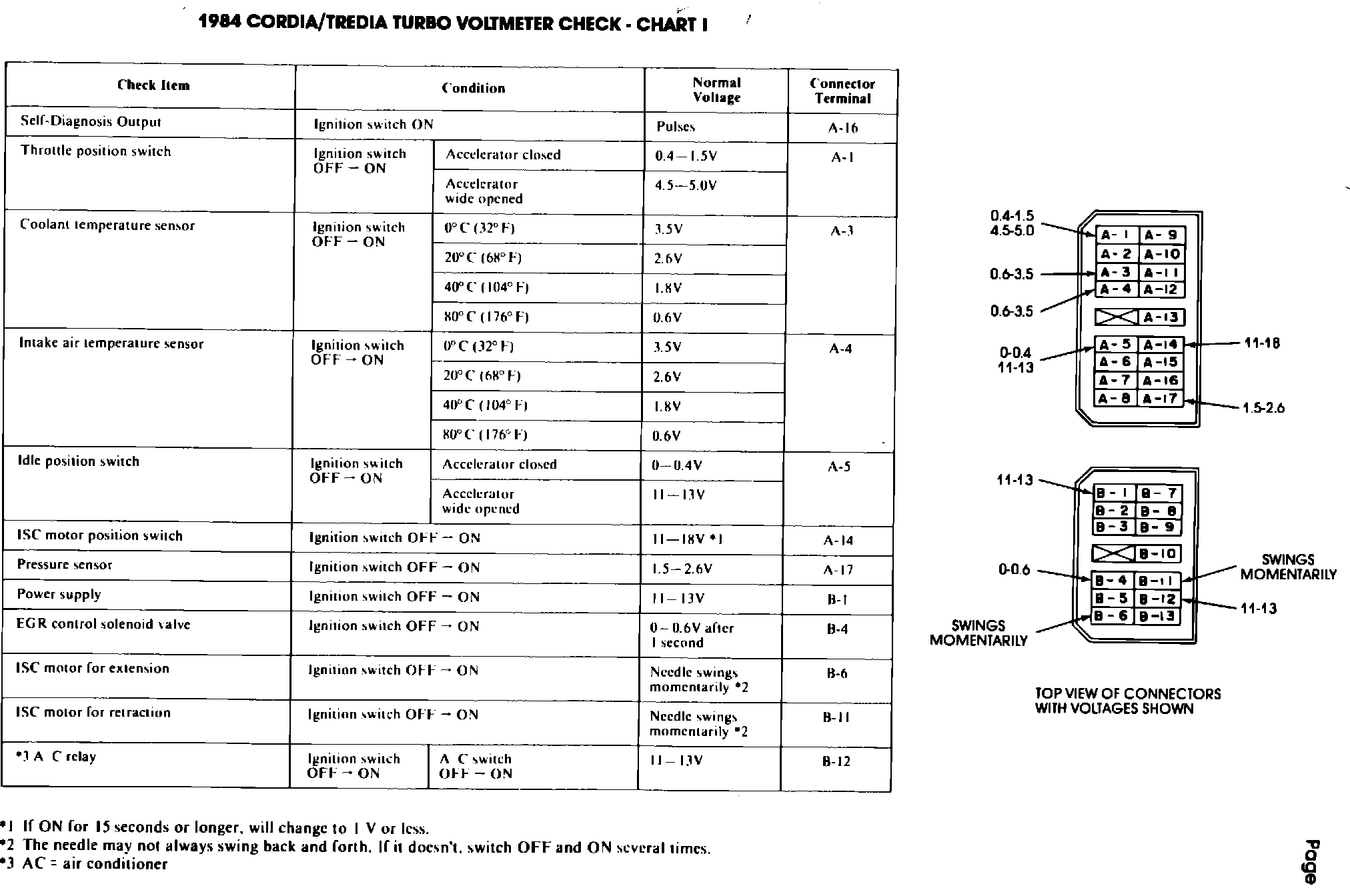 1984 Cordia/Tredia Turbo Voltmeter Check