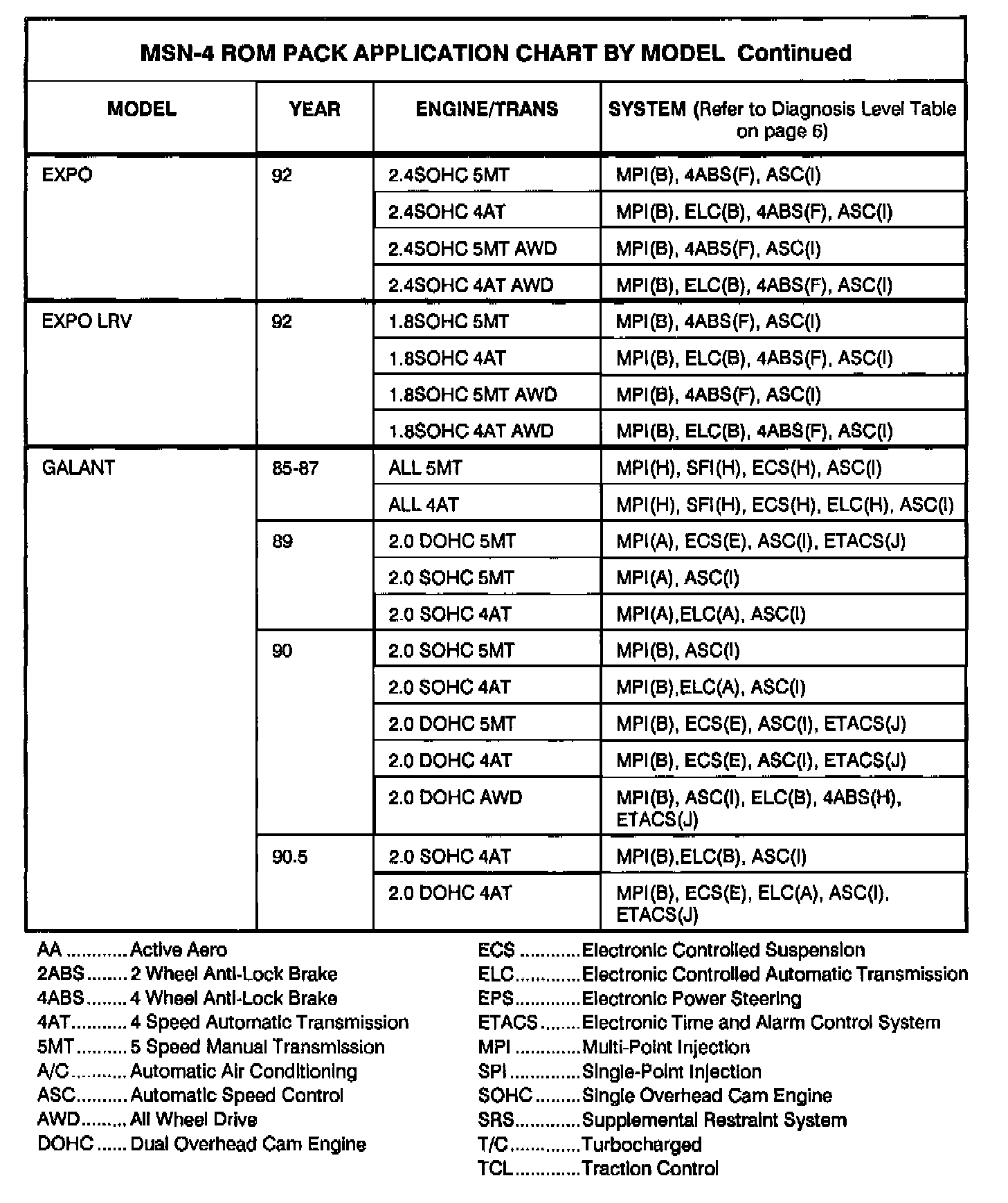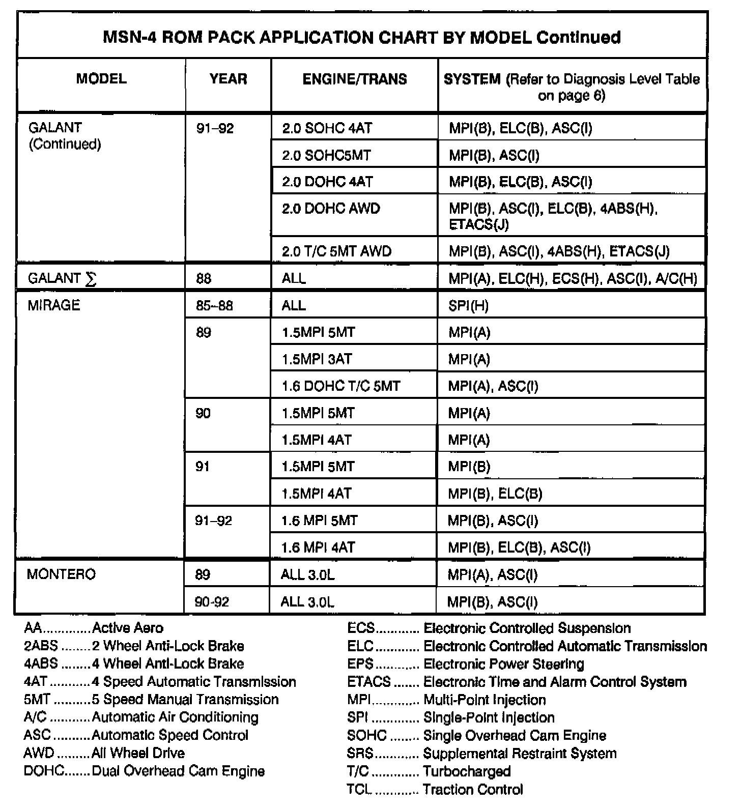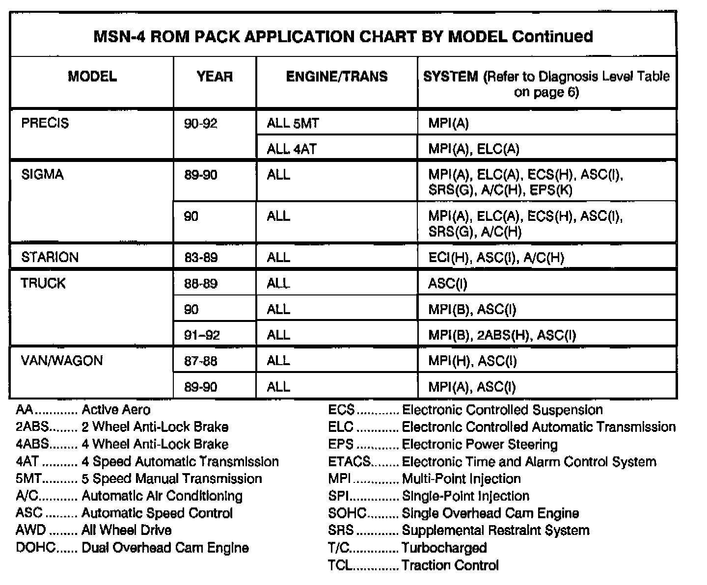 This bulletin lists vehicles and systems that can be tested using the Multi-Use Tester ROM Pack MSN-4 (Part Number MB991423). This ROM pack can be used in place of earlier ROM packs: MSN-1, MSN-2, MSN-3, and HMC-2.