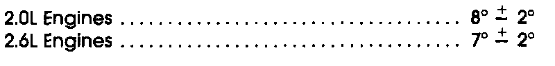 Before checking ignition timing, remove the distributor vacuum hoses and plug them. Then set ignition timing to the specifications given above. When the hoses are re-connected, the High Altitude Compensator (HAC) will automatically advance the timing approximately 5° at high altitudes.