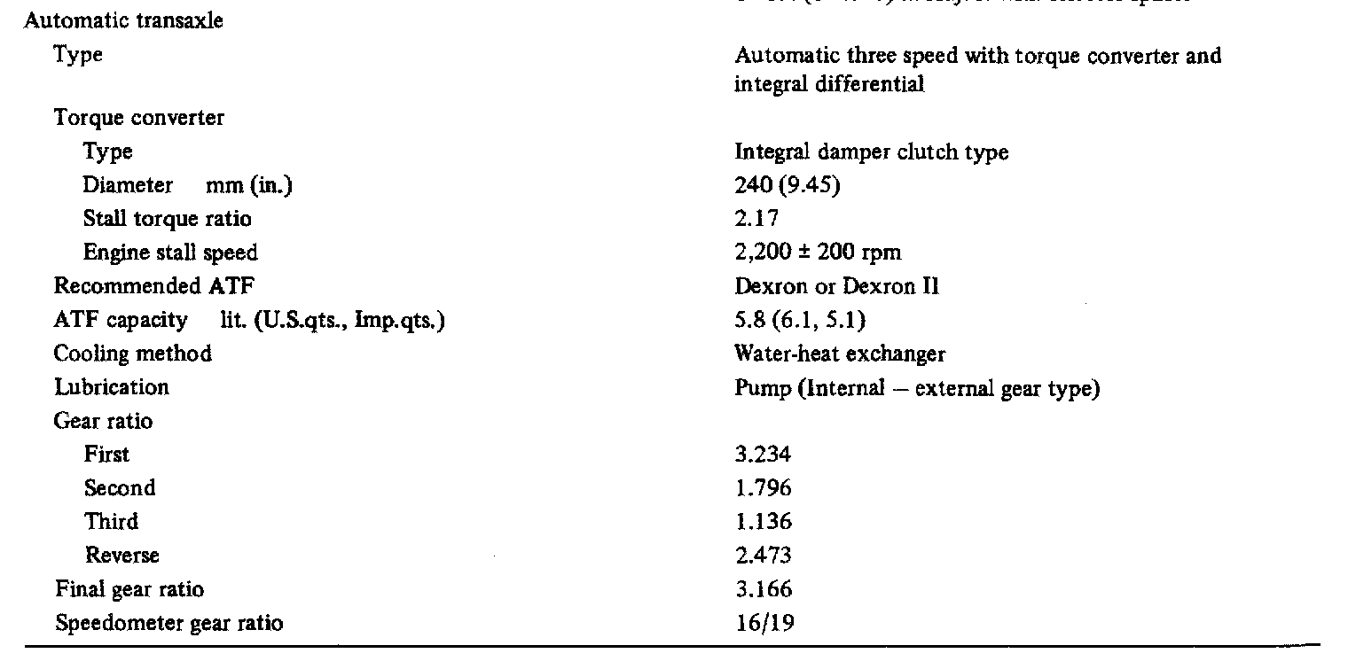 KM172 3-spd A/T, Gear Ratio: