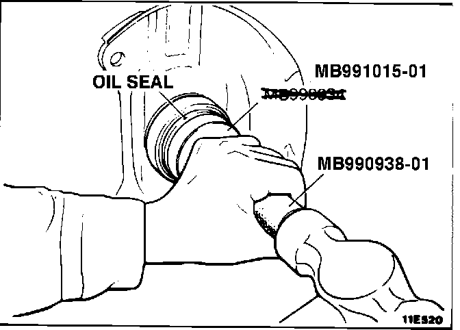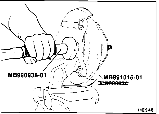 In the illustrations at the tops of these pages, you may also wish to cross out the incorrect Special Tool number MB990934 and write in the correct number MB991015-01 as shown at right.