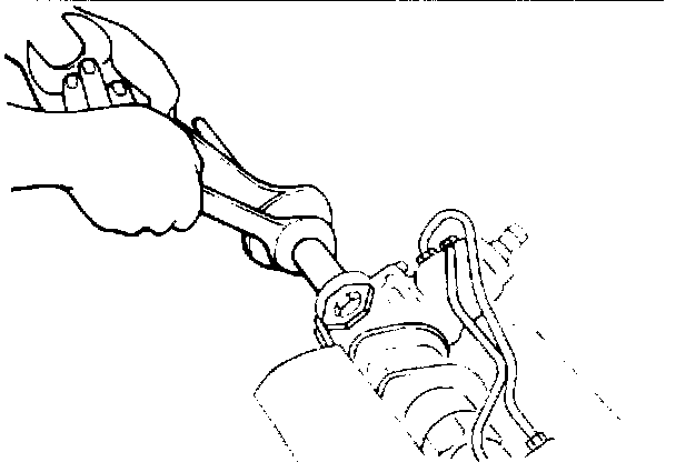 4. Mount the rack in the holding fixture MIT307112 clamped in a bench vise, and then remove the return tube from the valve body.