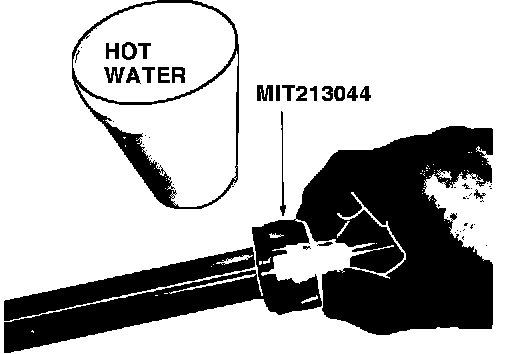 38. Slip the rack seal protector MIT213064 (long, clear plastic sleeve) onto the rack, and insert the rack into the housing through the seal. Remove the rack seal protector.