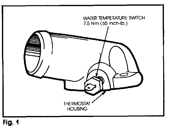 This bulletin presents new torque specifications for the water temperature switch in the thermostat housing on some models equipped with air conditioning. See Fig. 1.