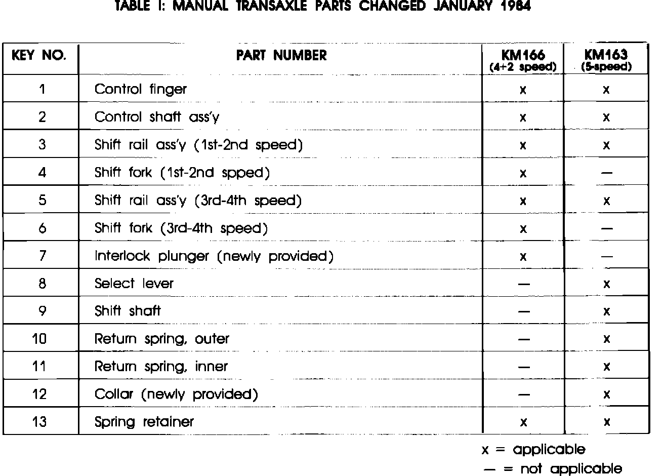 CORDIA/TREDIA MANUAL TRANSAXLE CHANGES