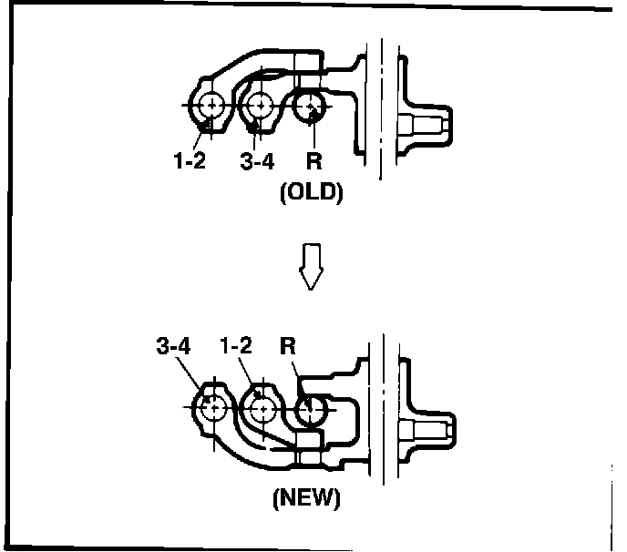 (3), (4), (5) (6) Shift Rail Assembly, Shift Fork-the shift rails in the 4+2 speed transaxle are now like those in the 5-speed transaxle. Figure 6 compares the old and new shift rail. The shift lug dimension is changed as shown in Figure 7.