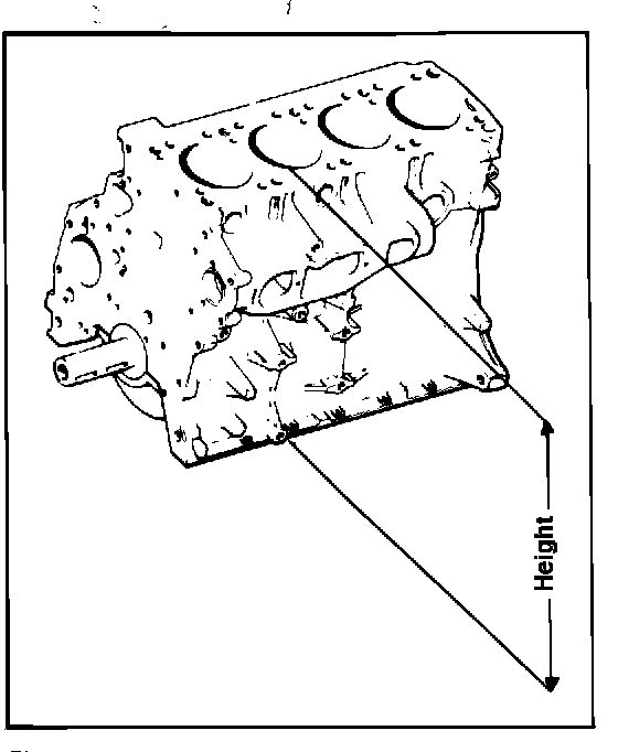 The standard heights in Table 1 may be used to determine whether a cylinder block has been resurfaced previously. The height dimension is shown in Fig. 2.