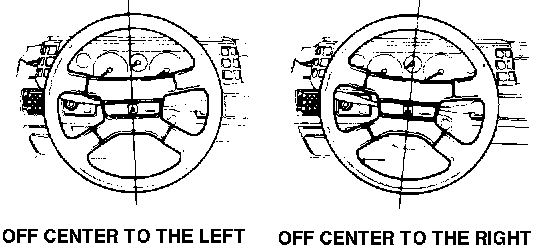 Measure how far the steering wheel is off center (degrees or inches at the wheel rim) and in what direction (left or right-see Figure 1). This is done in a road test.