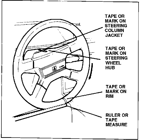 3. Place a tape strip or mark on the steering wheel rim; hold a ruler next to the rim as shown in Figure 2, and then steer the steering wheel until it is in the desired centered position. Record the distance the strip or mark on the rim has moved, See Figure