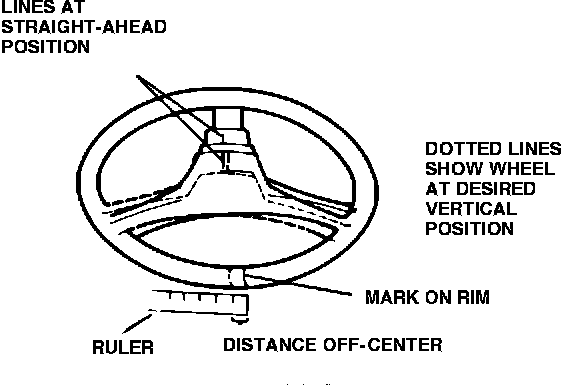 1. For the road test, take along chalk or tape and a ruler. Drive straight ahead on an uncambered level surface. When you are sure the vehicle's wheels are pointing straight ahead, mark the steering wheel hub and column jacket with a chalk or tape line (Figure 2).