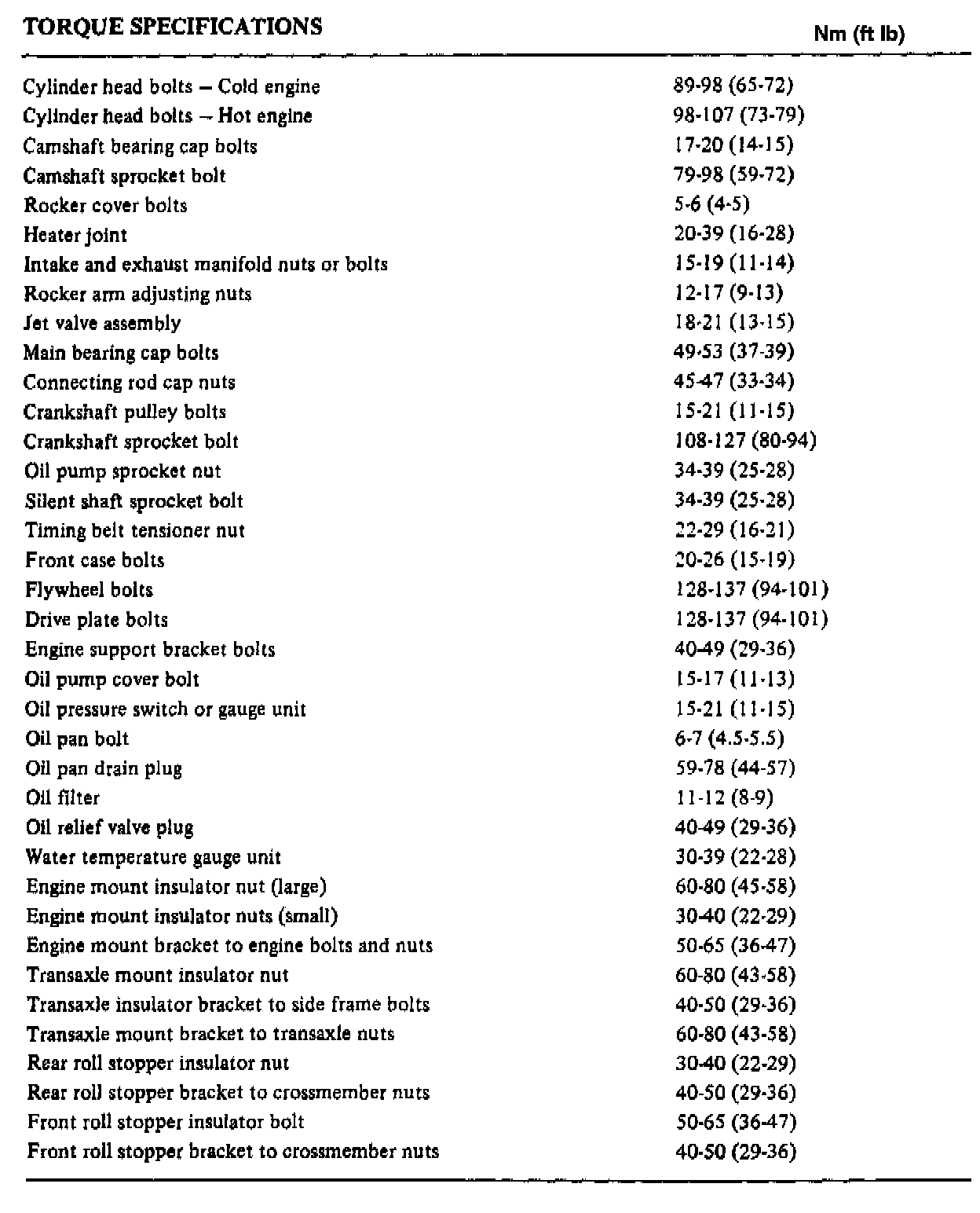 Torque Specifications