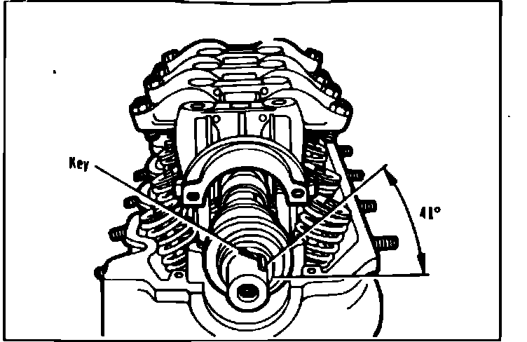 6. Position camshaft so that camshaft key is 41° from cylinder head rocker arm cover mounting surface, as viewed front front of engine, Fig. 18.