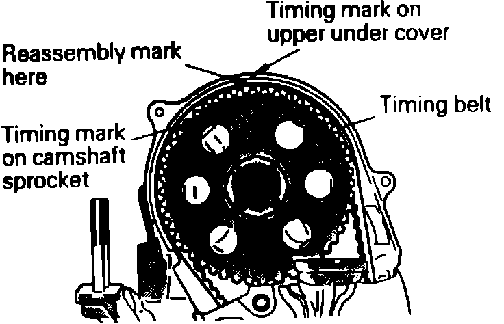 4. Place alignment mark on timing belt in line with mark on camshaft sprocket.
