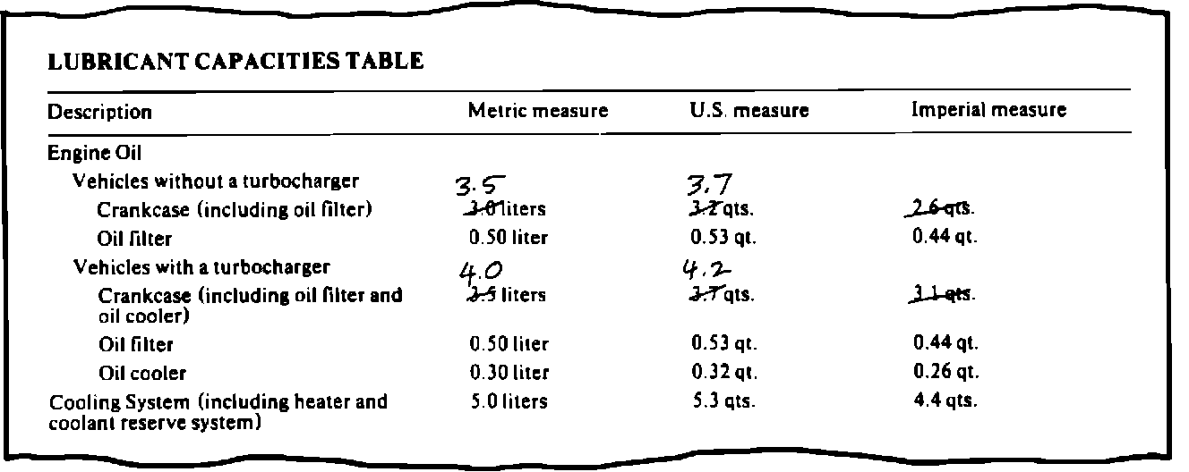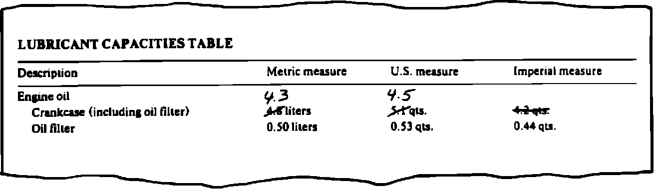 Add 0.2 U.S. quarts (0.2 liters) if equipped with an oil cooler.
