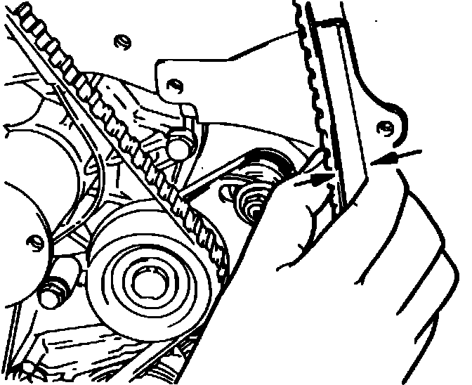 Fig. 37 Checking timing belt tension. 1600cc engine: