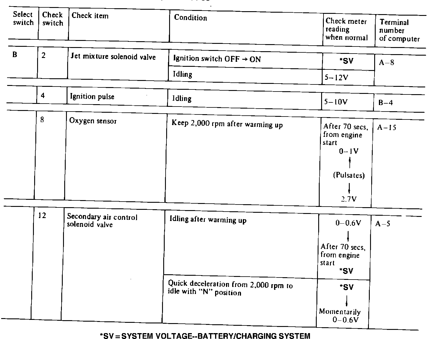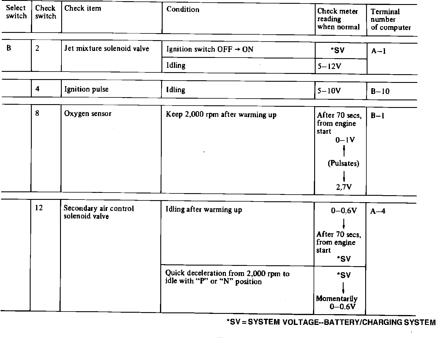 PURPOSE This bulletin is issued to update FBC System Check Procedure Charts in 1985 Service Manuals. The charts in the Service Manuals are not incorrect. The reason for updating them is to standardize on certain voltage values. When the meter reads system voltage, we have substituted the term "System Voltage" for the actual expected voltage range. Because system voltage can be affected by external influences, the general term is less likely to be misunderstood than actual voltage.